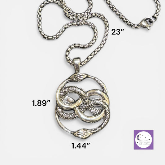 Double Snake Ouroboros Pendant and 23" Necklace